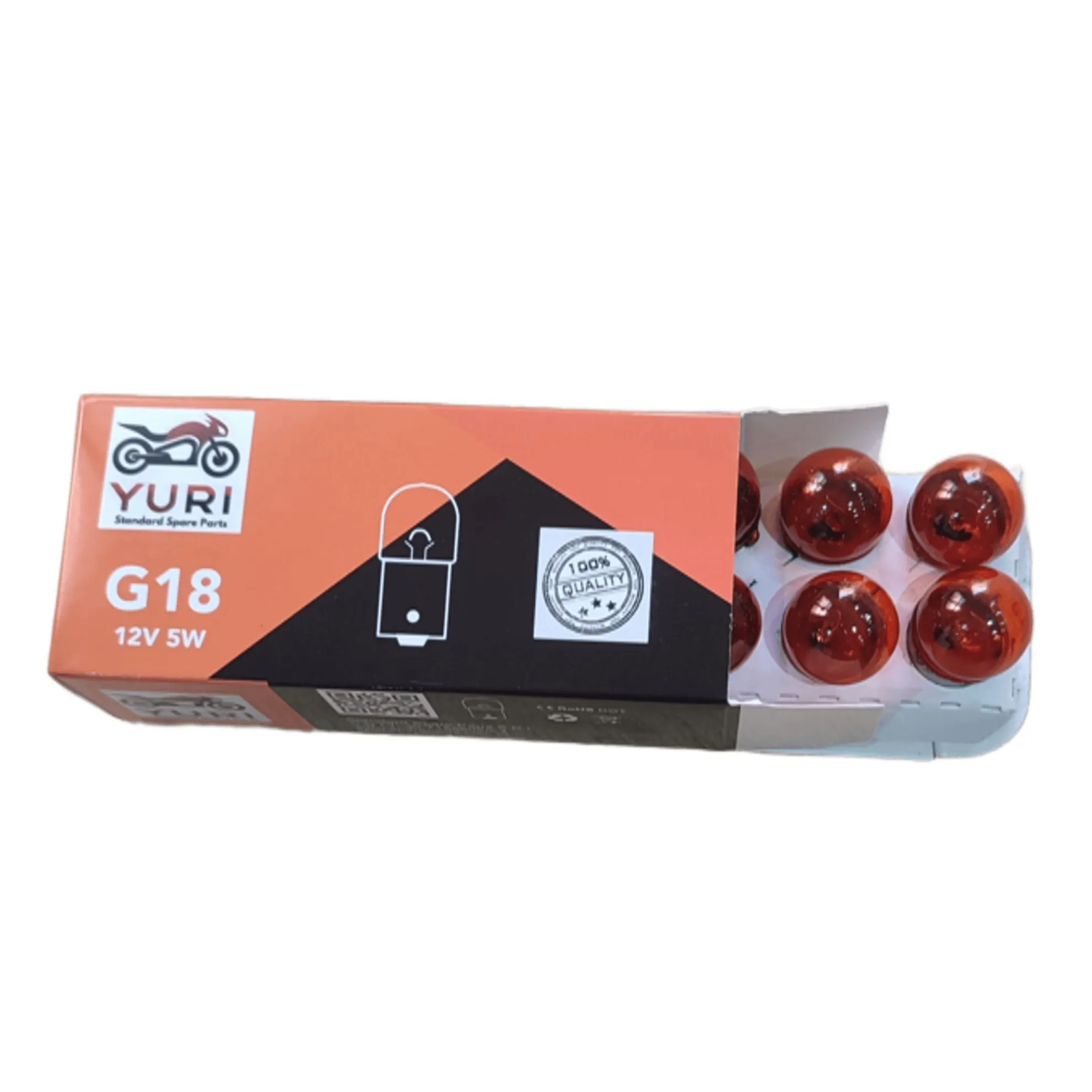 Lámpara Halógena para moto YURI con zócalo G18, 5w de potencia y 12v. Luz Ambar.